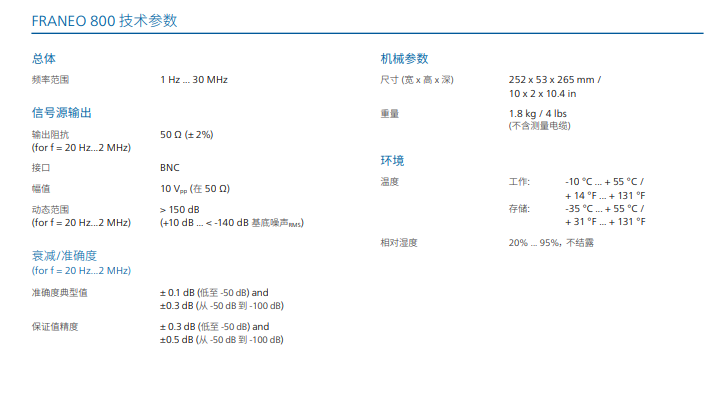 FRANEO 800 技術(shù)參數(shù)