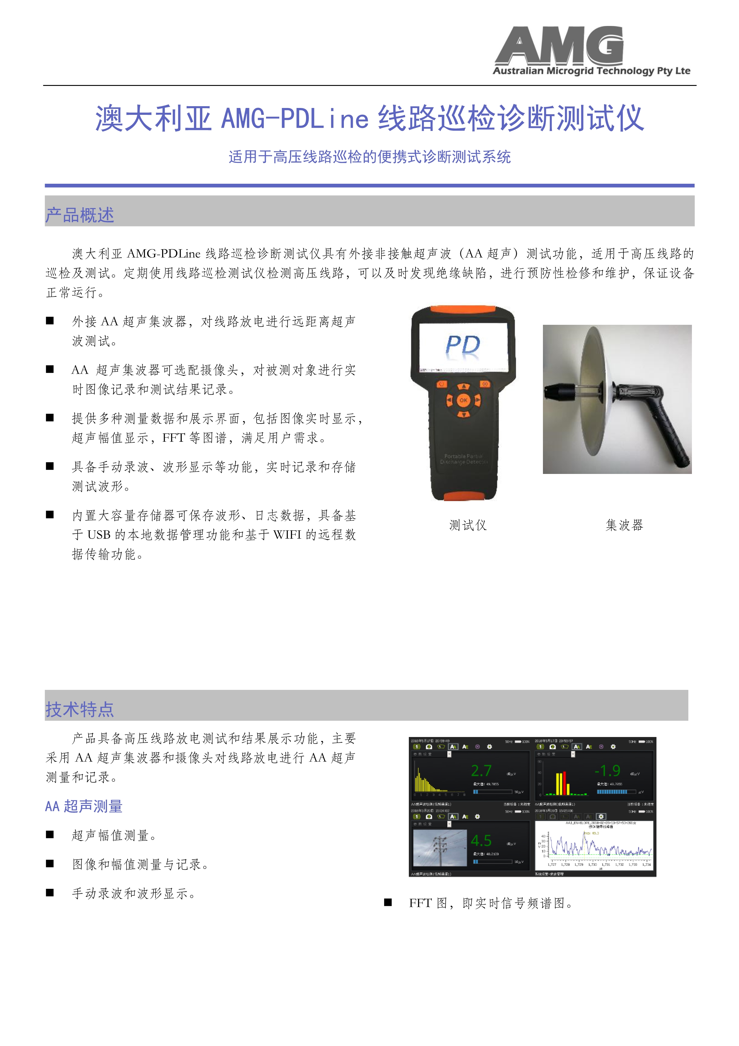 產(chǎn)品簡(jiǎn)介:澳大利亞 AMG-PDLine 線路巡檢診斷測(cè)試儀具有外接非接觸超聲波(AA 超聲)測(cè)試功能,適用于高壓線路的巡檢及測(cè)試。定期使用線路巡檢測(cè)試儀檢測(cè)高壓線路,可以及時(shí)發(fā)現(xiàn)絕緣缺陷,進(jìn)行預(yù)防性檢修和維護(hù),保證設(shè)備正常運(yùn)行。